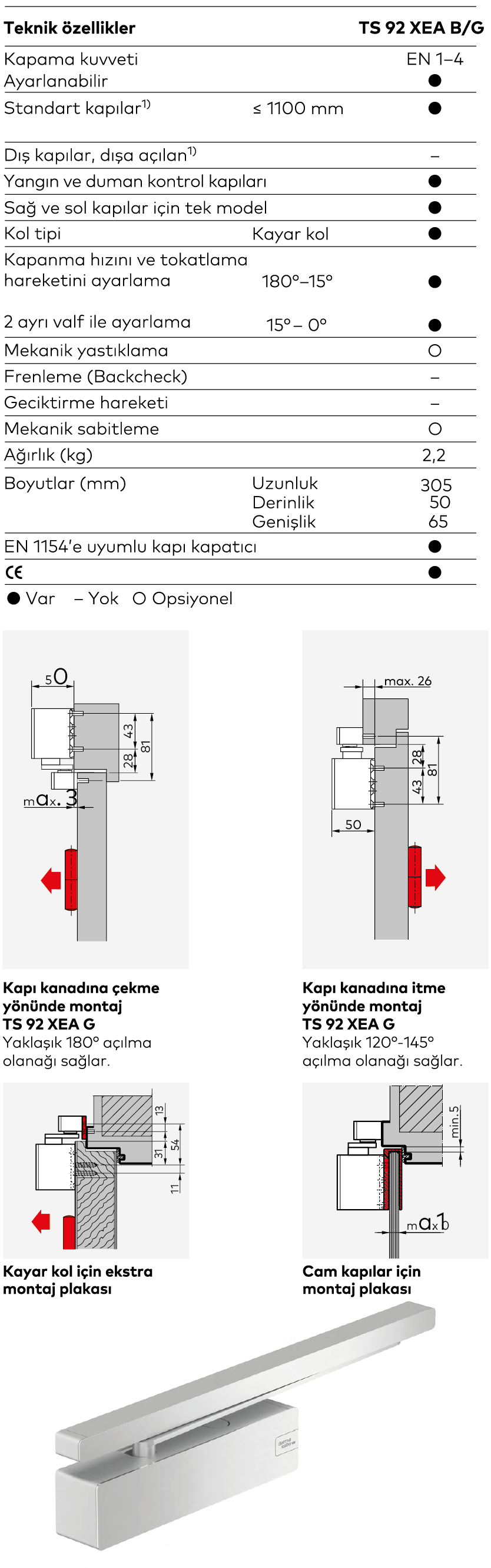 Kalp sistemli teknolojisi ile TS 92 XEA kapı kapatıcı özellikle iç mekanlar için tasarlanmıştır.