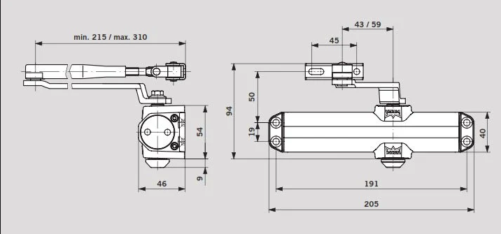 - TS Compact 180° – 15 ve 15° – 0° arasında ayarlanabilir kapanma hızına sahiptir \n